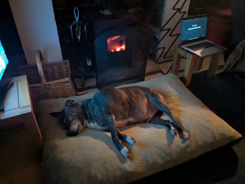 No boots on walking today, so I did a 15 min stretch video, 30 minute belly fat standing video and 10 minute dumbbells. Good overall exercise. Keeping up with RED January and Dry January so far. Lovely to just spend the whole day at home, need this comfort sometimes. Dogs played outside in the garden field bit, youngest dog did some sniffer work as well as playtime, gets her nice and tired.