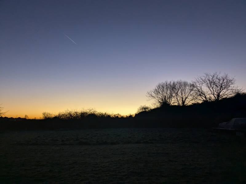 Thursday. Lovely sunrise this morning whilst wandering in the field. Still in a brain funk, did lunchtime loop and short walk with the oldies, another very early night. Finding it hard to shake myself from this brain space, normally I am better at combating negative thoughts. Concluded that, even if I need to stop trying to get quicker or run, I need to remind myself this is a self discovery journey, not a punish my body and mind journey. I have lost the desire to see what I can do, and just feel despondent. Hoping being open about my feelings will help move on. Boots on: 1.87 miles, no booze.