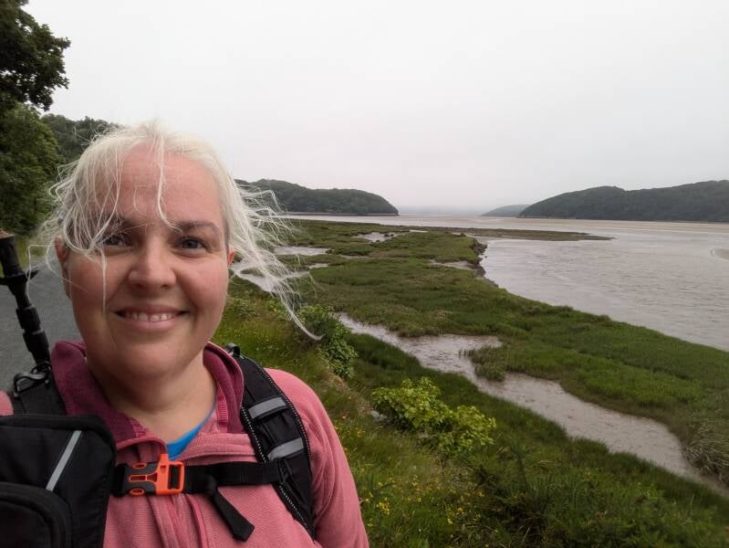 I had decided to wear my trainers until the second stop- lunch- at 12.4miles, as a majority of this section was along the estuary and would be decent enough. I took one walking pole- this feels easier than 2, especially when needing to carry them- you can see it sticking out of the top of my bag on the pictures! I did put my walking boots into my bag as well, just in case the terrain changed and I needed to change sooner than I expected.